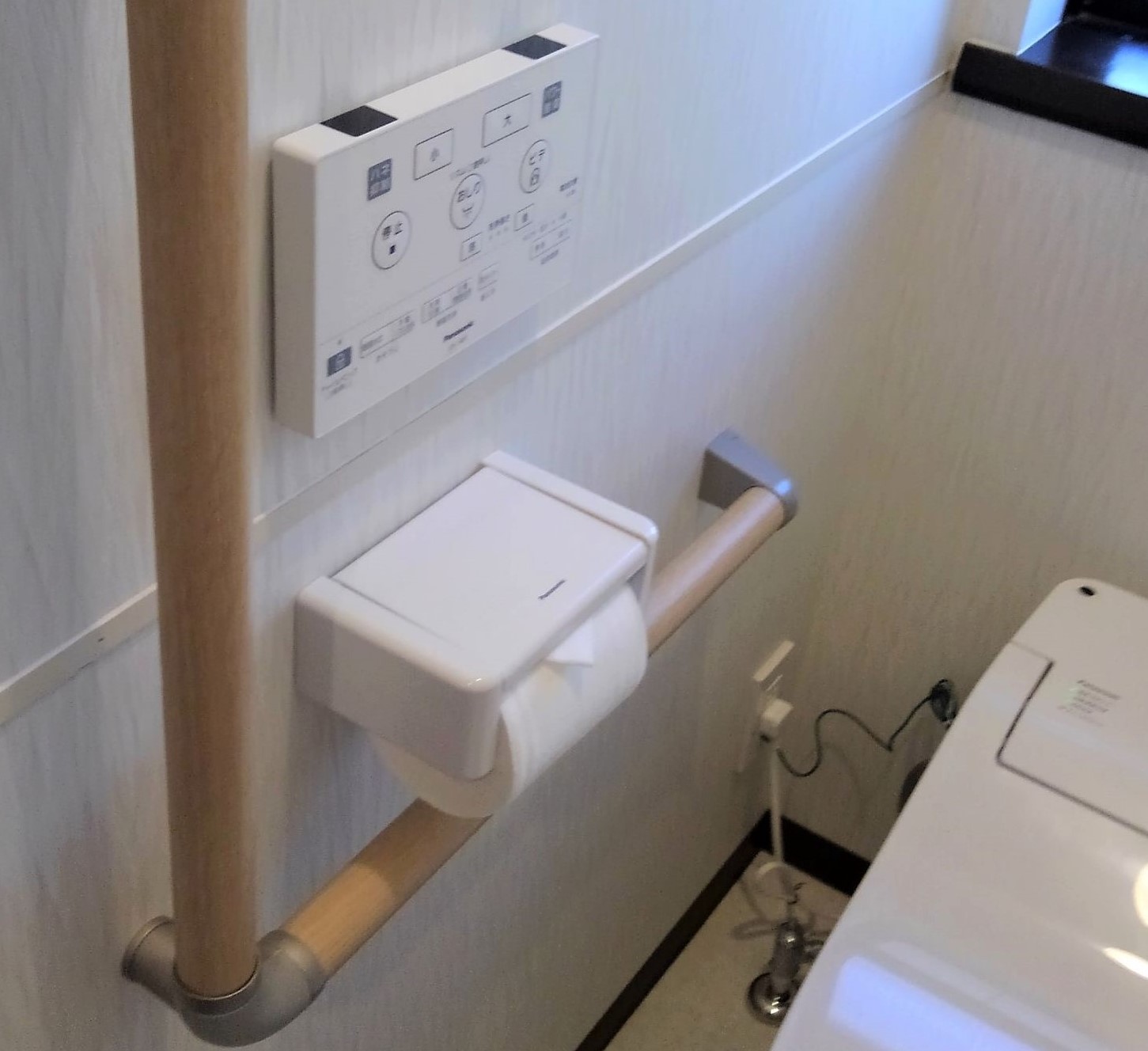 ・手すりをトイレ横に設置、お母さまに座る動作をしていただき最適な位置に取付けることにより、立ち上がりの動作が楽に。