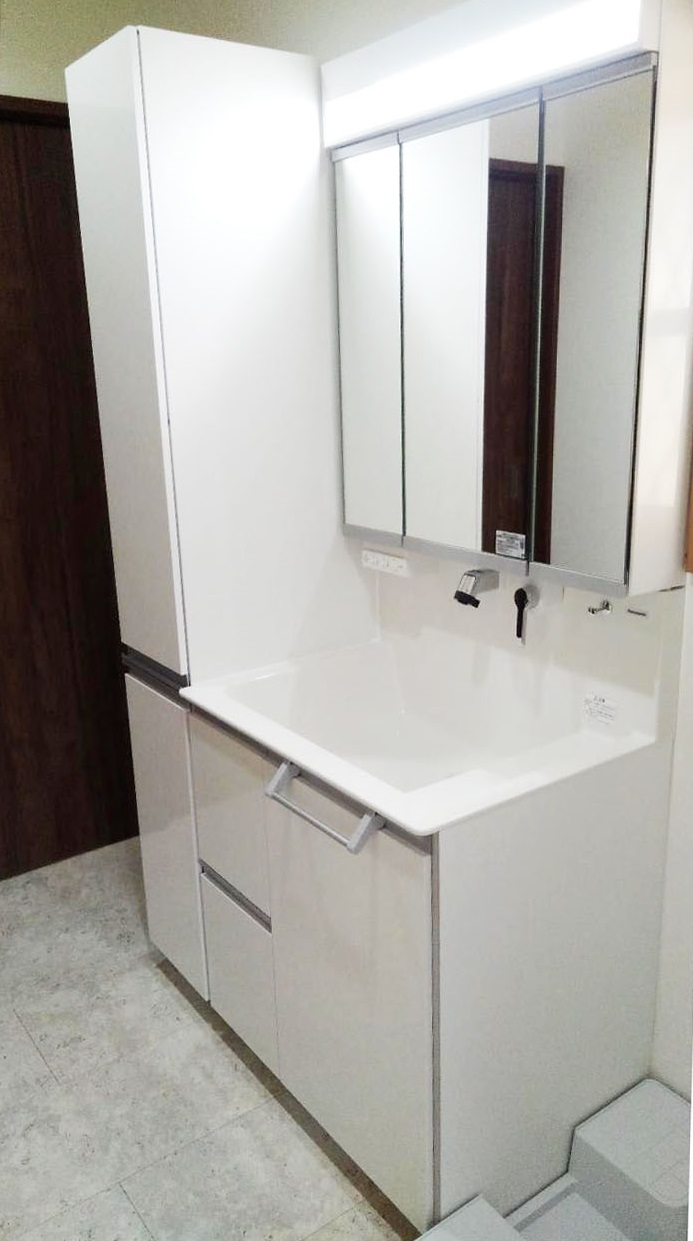 ・洗面化粧台 パナソニック ウツクシーズ W750+スタンダードLED三面鏡 / サイドキャビネットW300