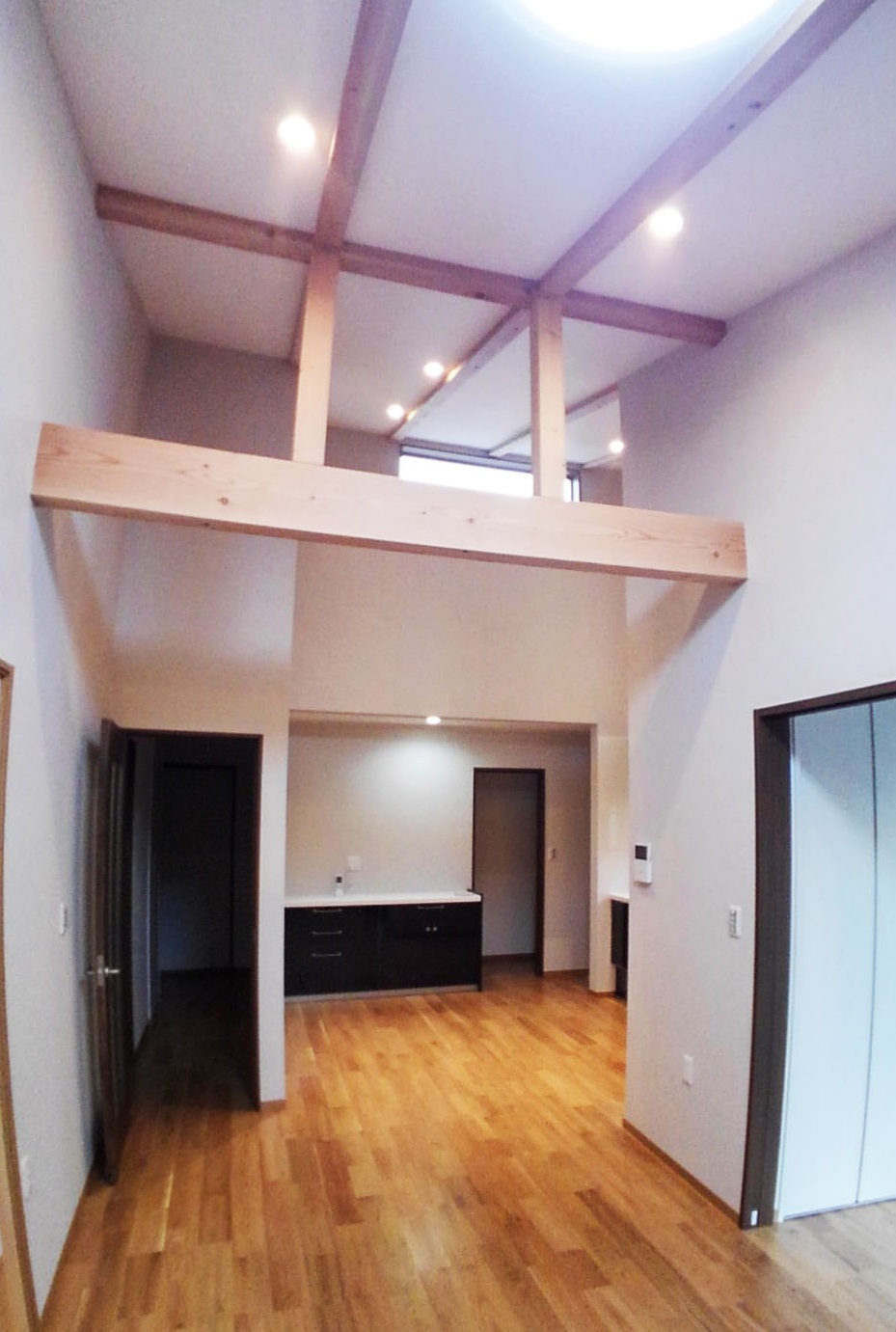 ある空間となりました。床は無垢材を使い、梁を見せて和風モダンなイメージに。