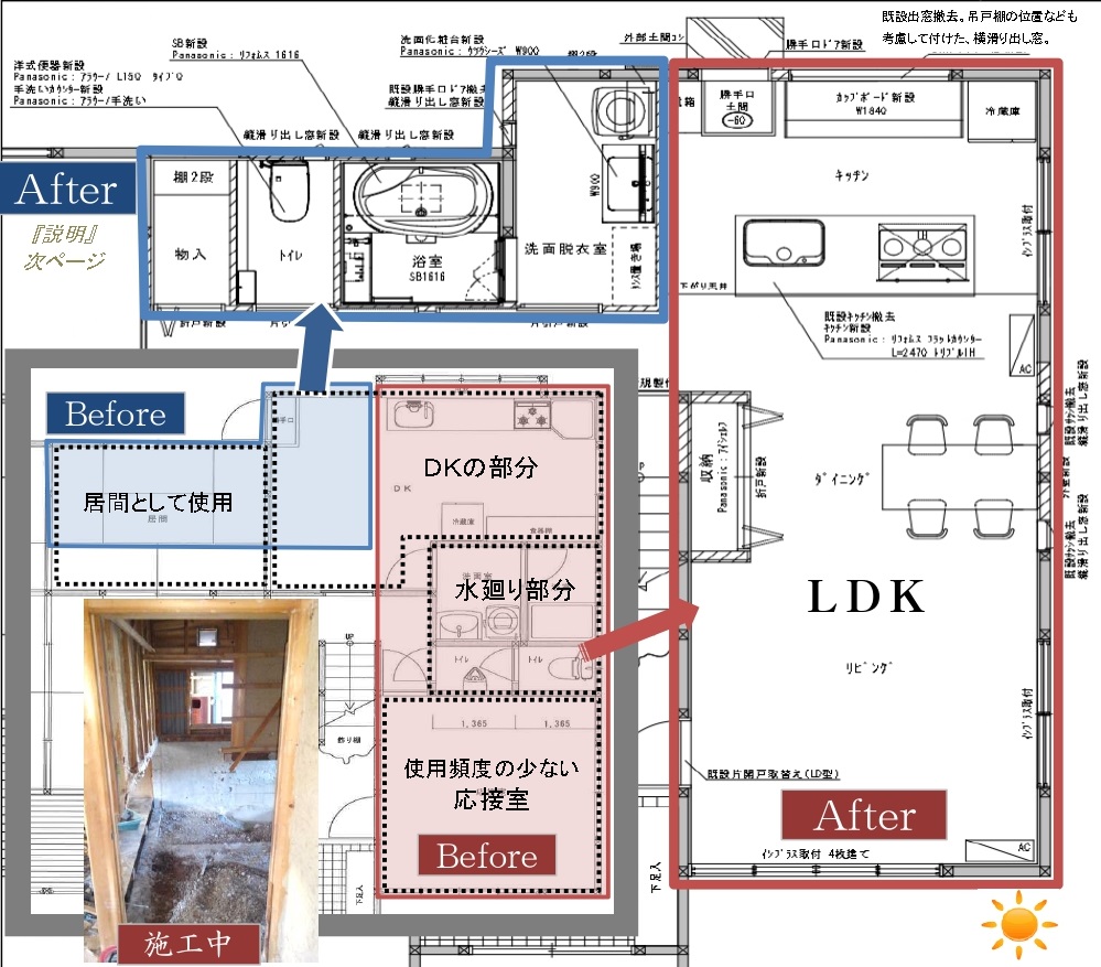 使い勝手の良い間取変更して、 新しい設備にするか迷ってみえました。