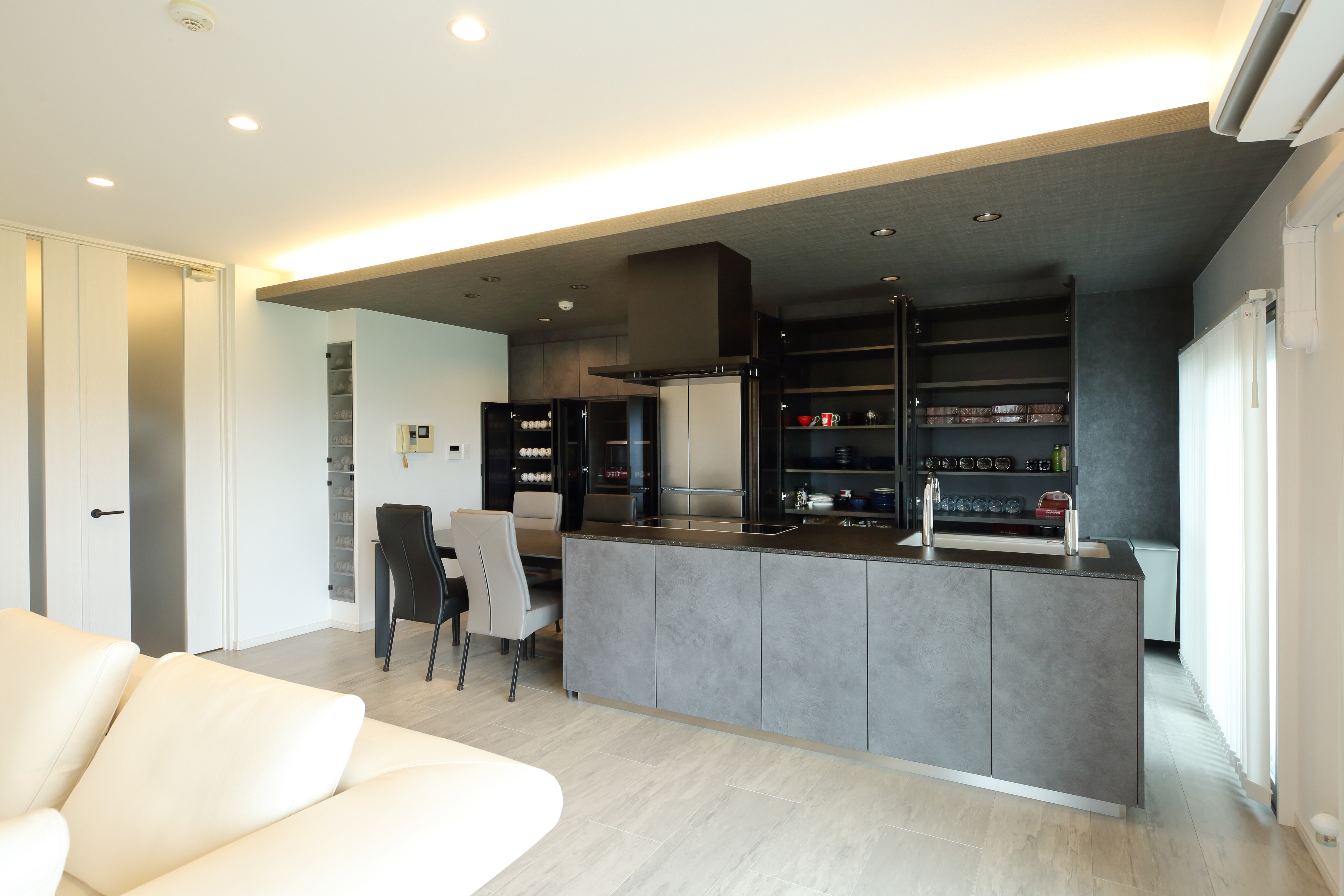 ブラックのキッチンカウンターがよりスタイリッシュな雰囲気となり、細部にもこだわりのキッチンです。