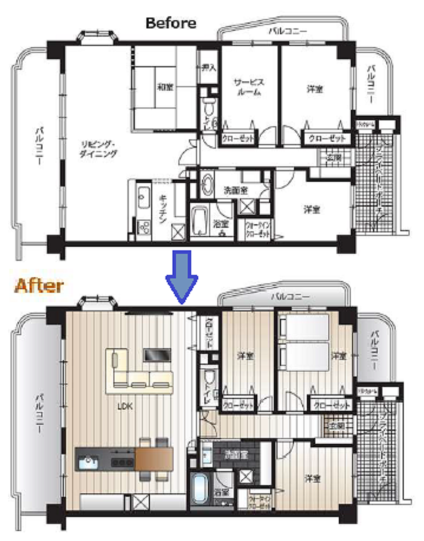 ・和室をなくしてリビングを広くしたい。