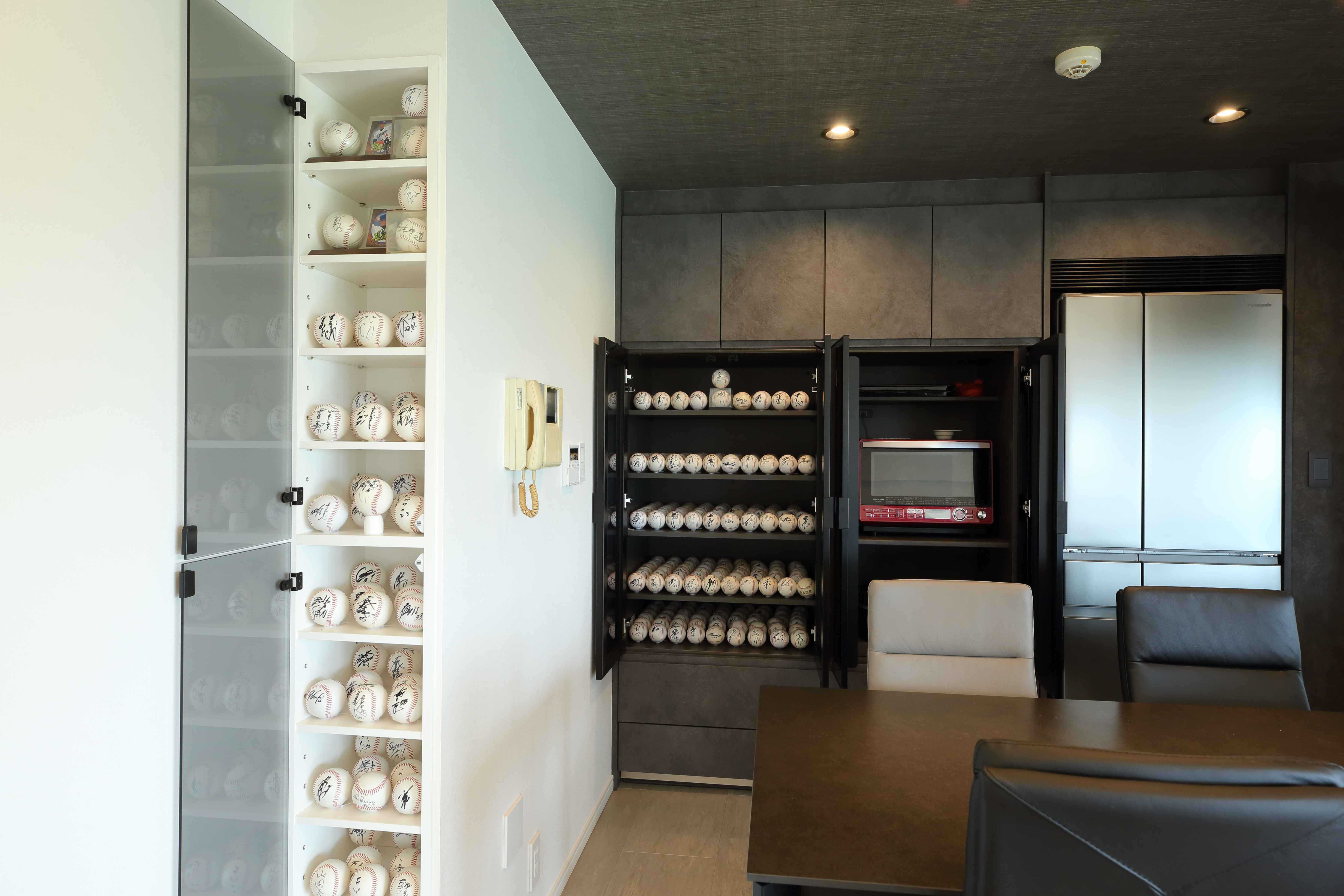 主人は、サインボールを飾る棚を作ってもらったので、時間があると眺めて楽しんでいます。