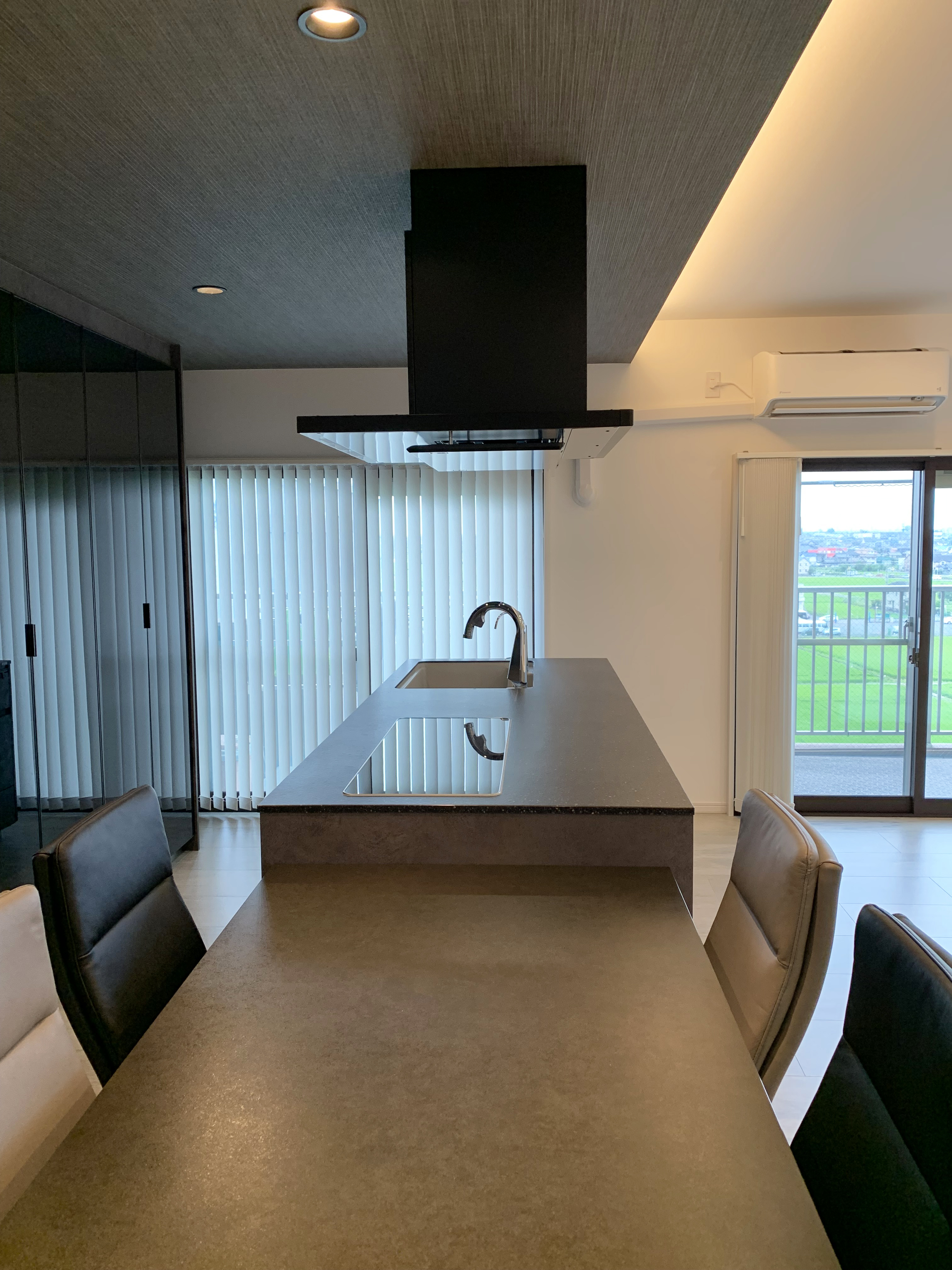 キッチンと横並びのテーブルの配置が気に入っています。
