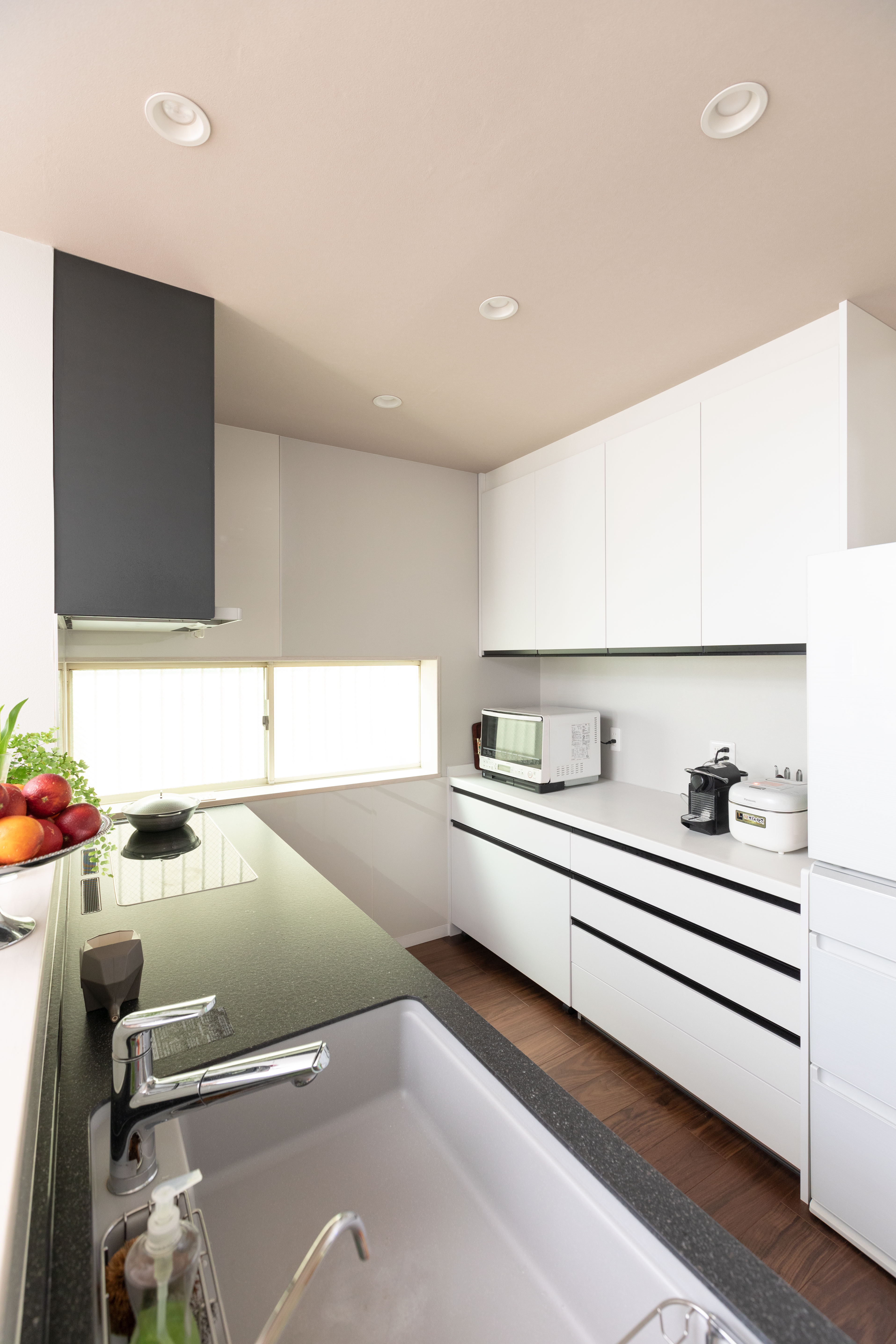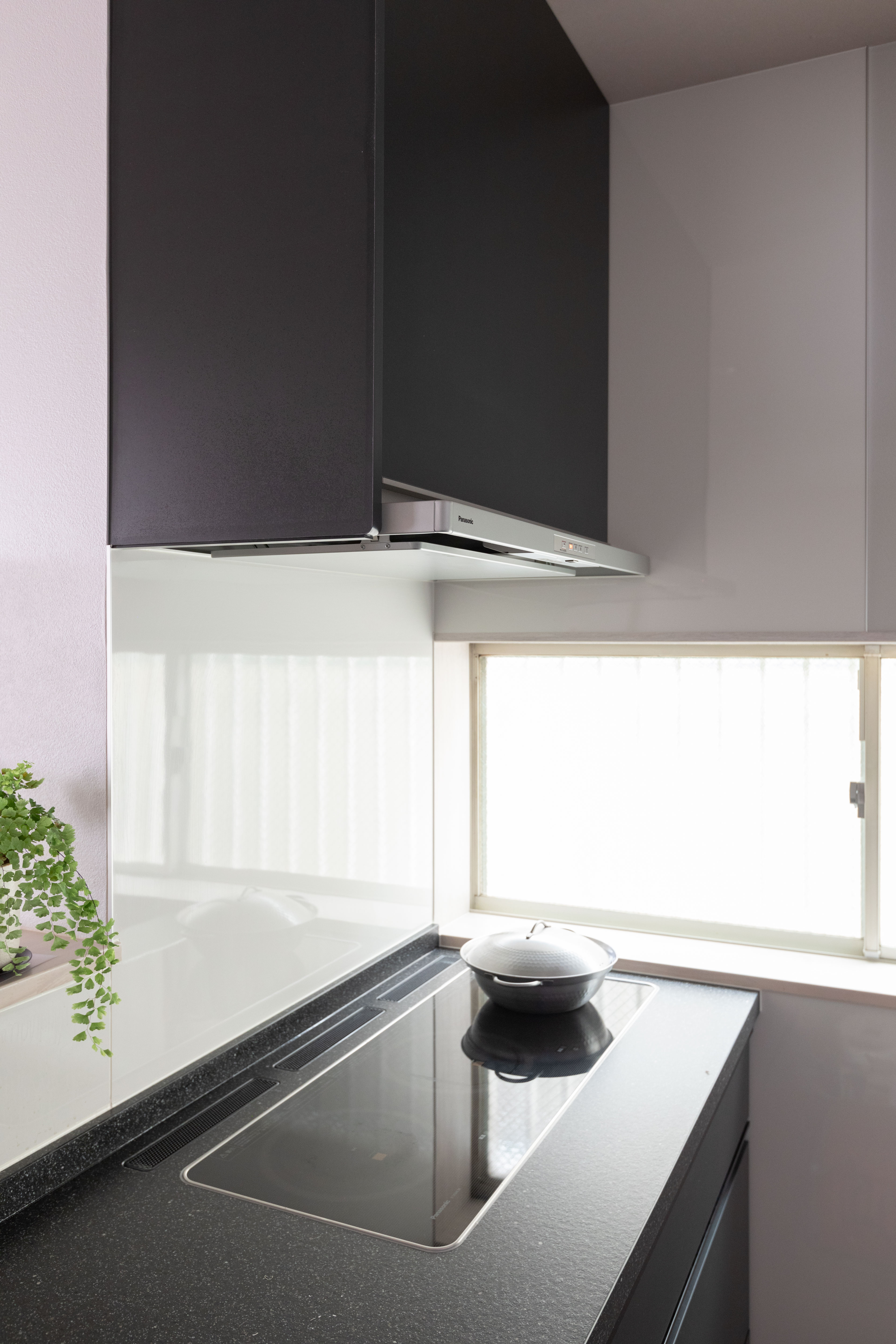 レンジフードはIHに合わせて奥行きが浅めなので、背の高い長男が料理中に頭をぶつけにくいのも良いですね。