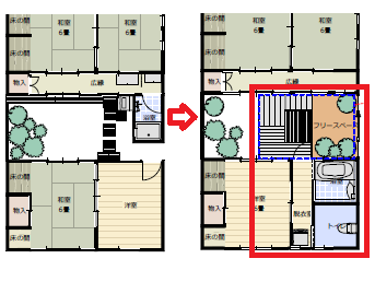 介護が必要となった時に自立してお風呂に入りたい!トイレにいきたい!というお客様の強い思いがあったが今のお風呂では難しい。新しくお風呂やトイレが欲しい。また、以前は所々に段差もありご家族の方が危険な思いをすることがあったので、バリアフリーにして欲しい。