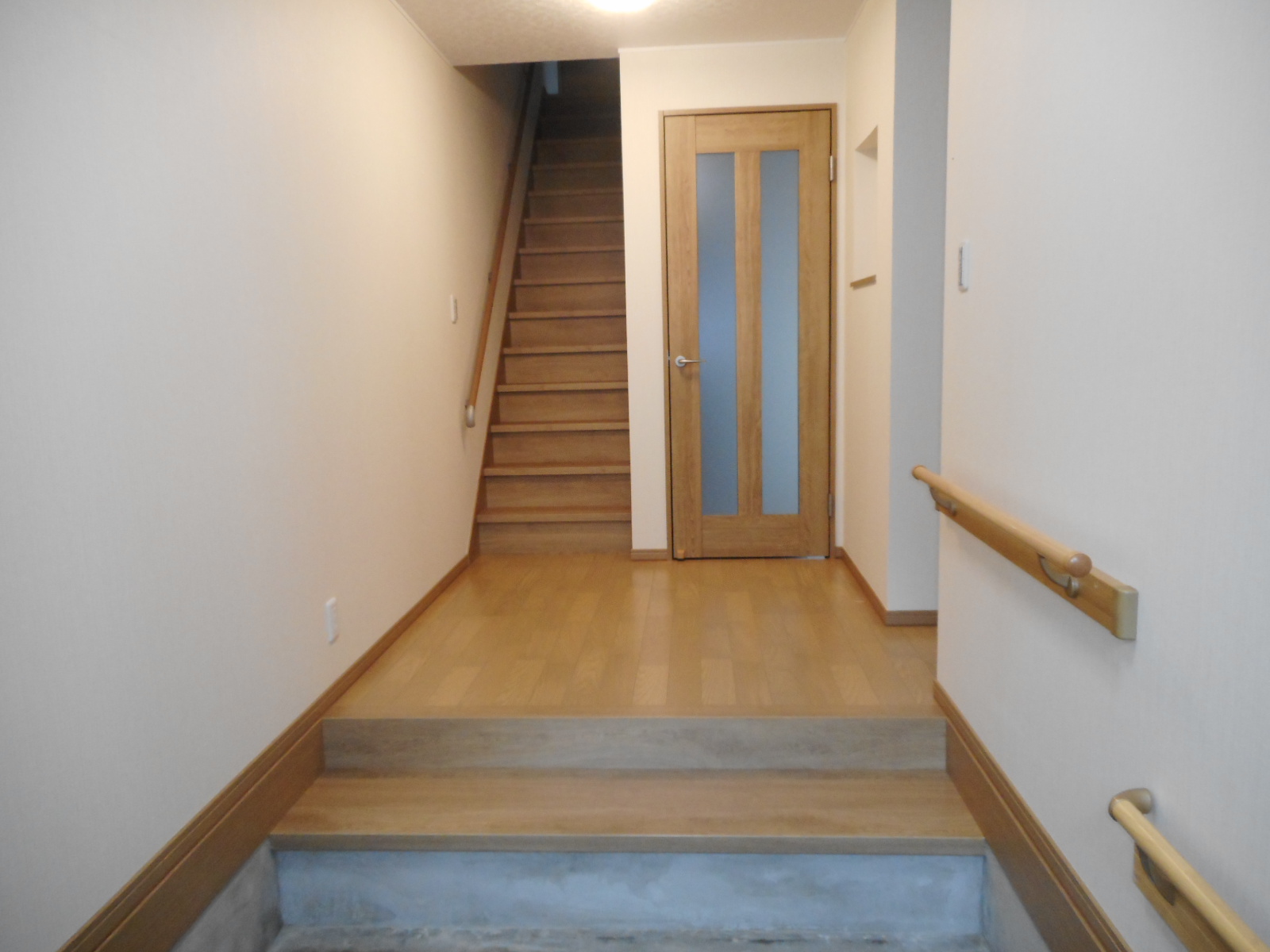 階段はパナソニック/ベリティスシリーズの手摺り付のシステム階段で安全に。