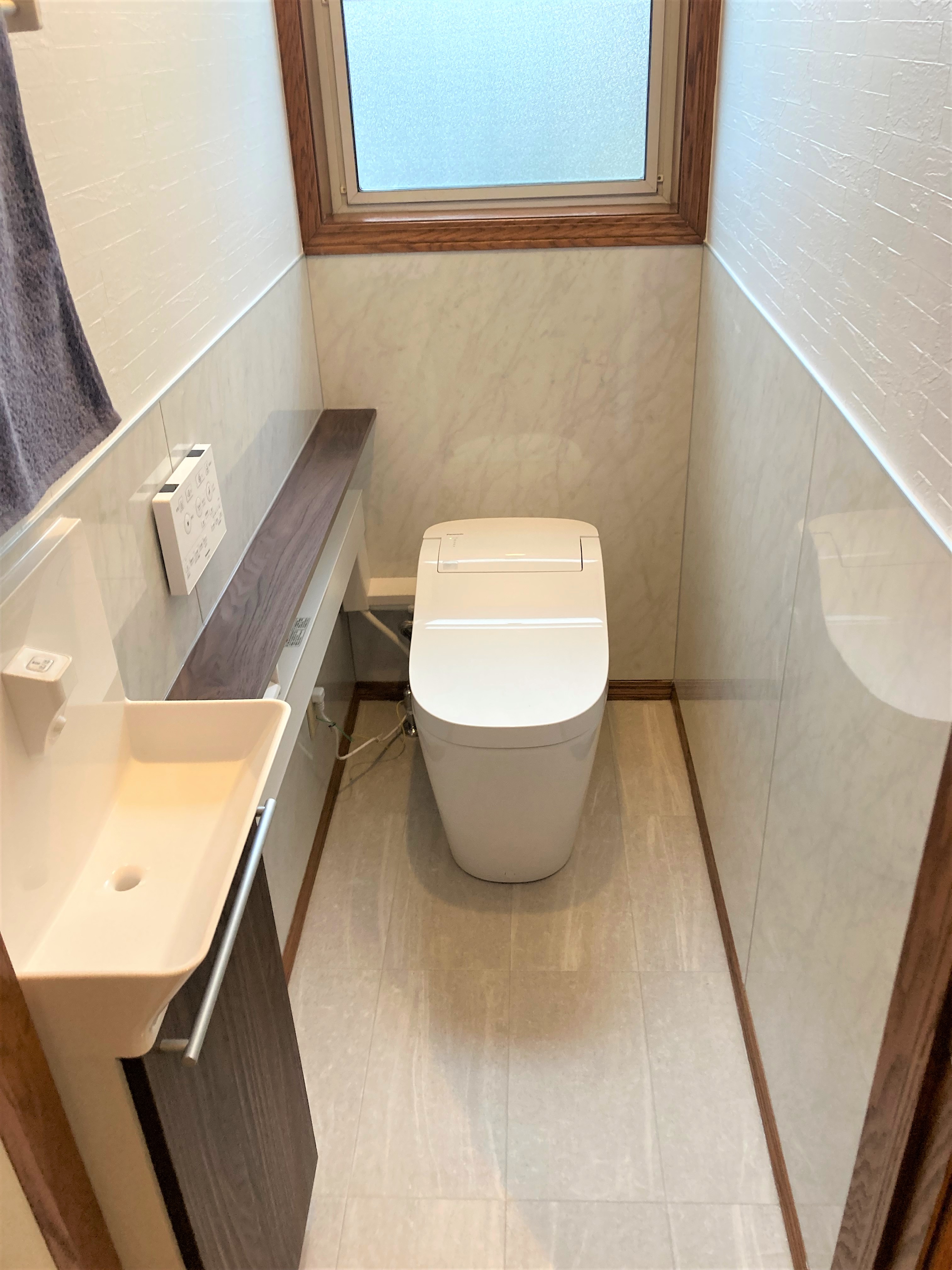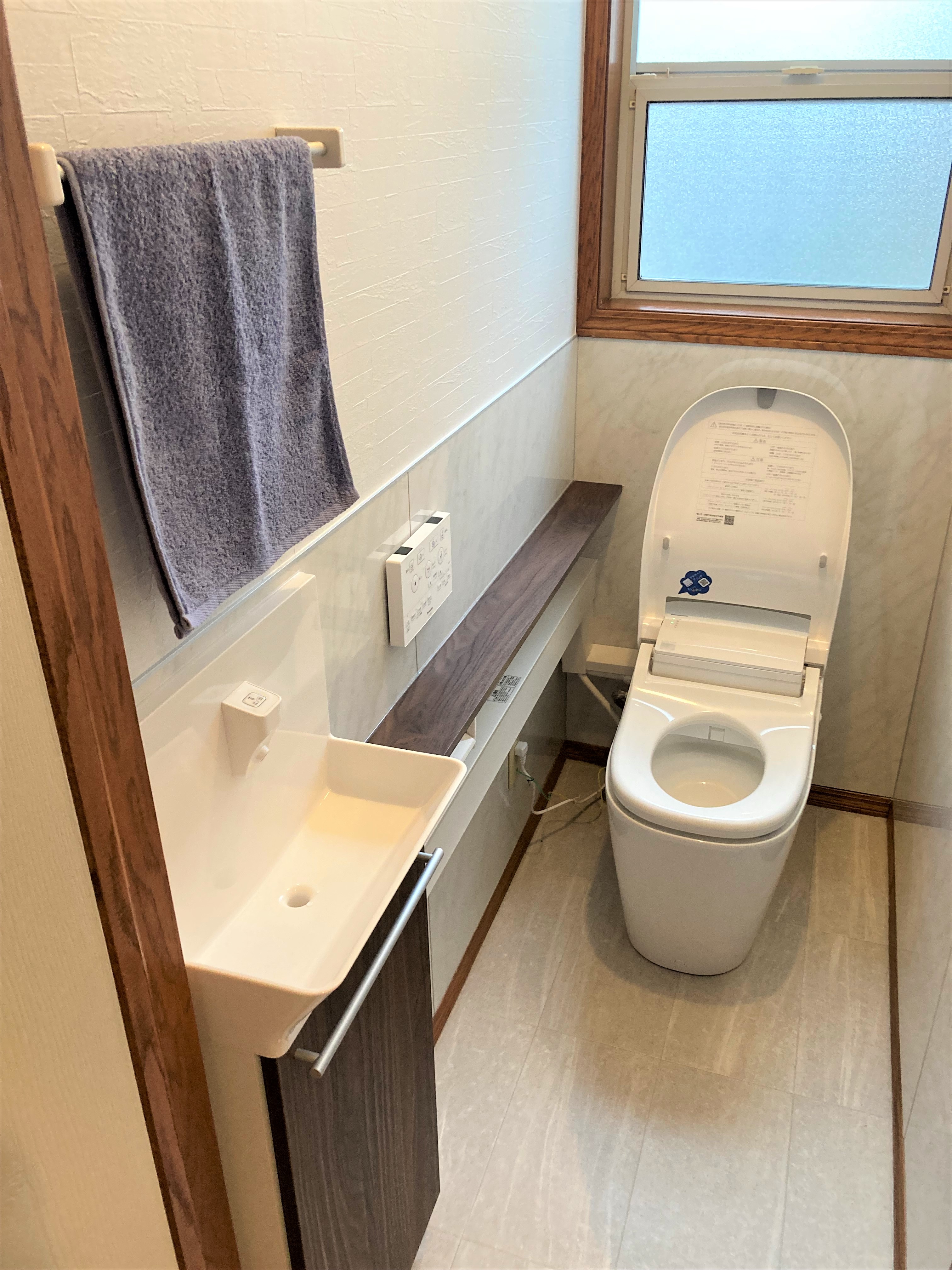 ・今回は、既存のタンク・手洗い付きトイレから、タンクレスタイプに取り替えしました。