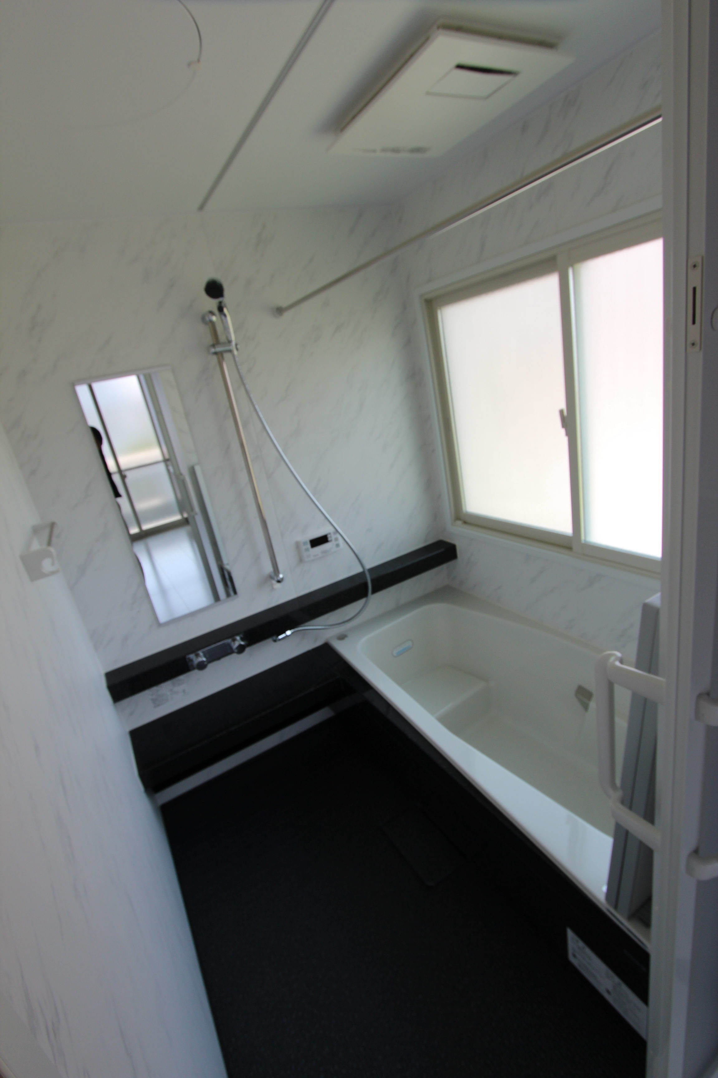 パナソニックのシステムバス『Lクラス』はあったか仕様のスタイリッシュな浴室にしました。黒のグラリオダブルカウンターもインテリア性をUPしてくれます。