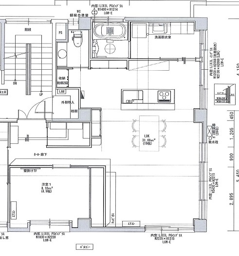 RC造4階建ての2階の一部を住居としてリフォームしました。