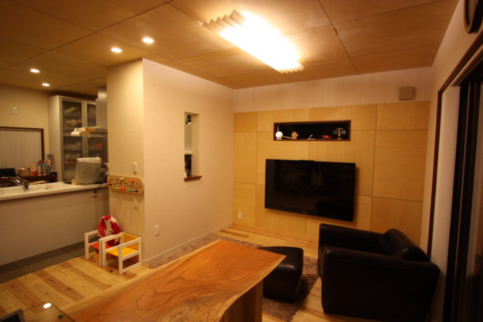 リビングの東側はシナベニヤでアクセント。
