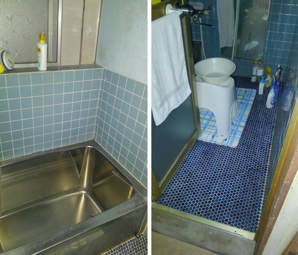 浴室は床はタイルで冷たく、壁もタイルで掃除がしにくい。