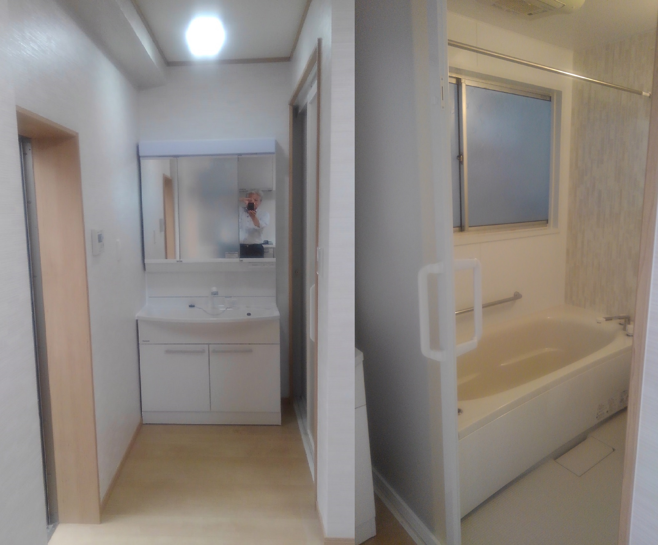水廻りの設備(システムキッチン、システムバス、洗面化粧台)~床・壁・天井の貼替、建具の交換で、夫婦で快適に暮らせ、且つ 使いやすい水廻り設備で快適になりました。